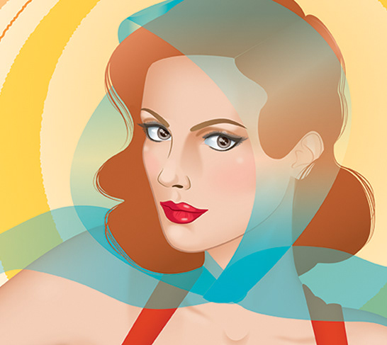 With a retro flare, this is a digital illustration of swimsuit model, posing.