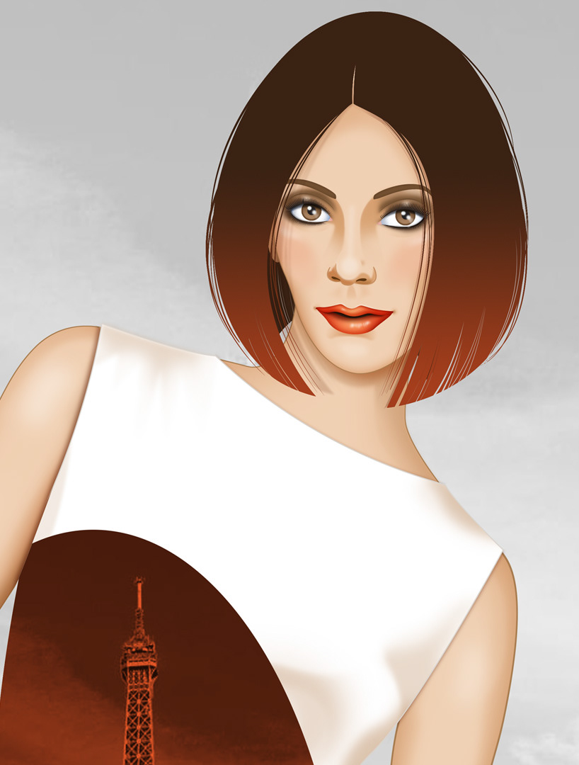 Digital illustration of a fashion model, posing in a couture dress design (thanks to Alexander McQueen, for inspiration)